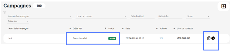 Vous aurez également la possibilité de dupliquer cette campagne (en cliquant sur l’icône