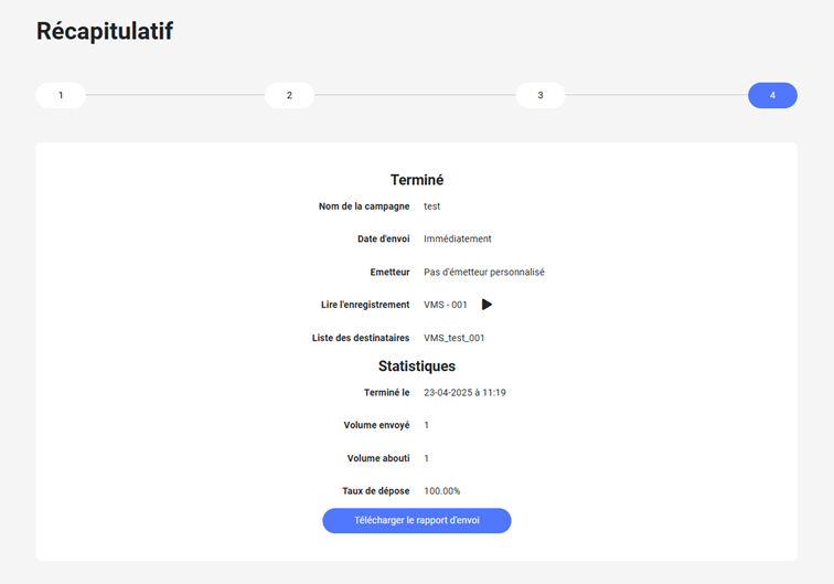 Une fois votre campagne terminée, vous pourrez accéder au rapport en cliquant sur l’icône représentant un secteur et le télécharger. (Dans votre onglet "campagne")