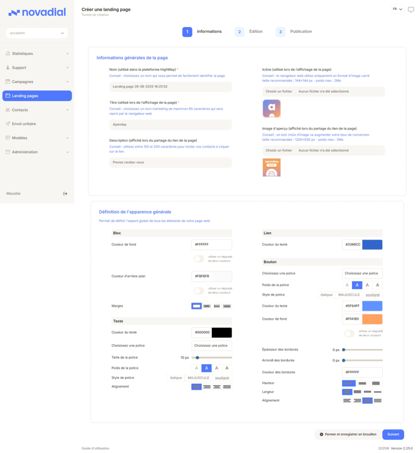 Il est également possible de définir l’apparence graphique générale (couleurs, tailles, typos, mise en page de vos textes). Cela vous permet d’avoir une page homogène et de gagner du temps sur l’étape suivante d’édition.